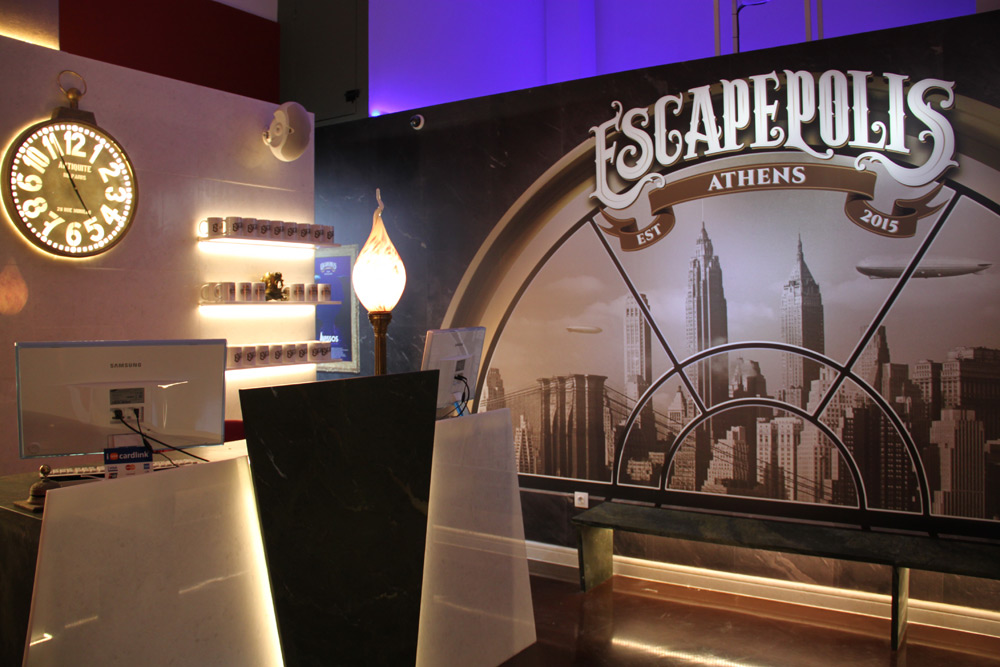 Η εμπειρία ξεκινάει από τη στιγμή που περνάτε την πόρτα του Εscapepolis: Στο χώρο υποδοχής μεταφέρεστε σε μιαν άλλη εποχή, όπου συνυπάρχουν χαρακτηριστικά της δεκαετίας του ΄20 και επιστημονική φαντασία. Τα μοναδικά δωμάτια του Εscapepolis είναι «αληθινά». Βασισμένα σε δημοφιλείς ταινίες του Hollywood και βιβλία best seller, γίνονται το σκηνικό ενός εικονικού-πραγματικού παιχνιδιού. Οι παίκτες έχουν αντίπαλο το χρόνο, τους ενοίκους των δωματίων και τα μυστικά τους. Εκείνοι δεν τα έχουν εγκαταλείψει, είναι παρόντες… Περιμένουν υπομονετικά να ζήσετε την ιστορία τους.